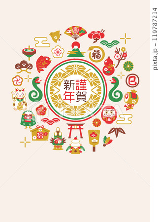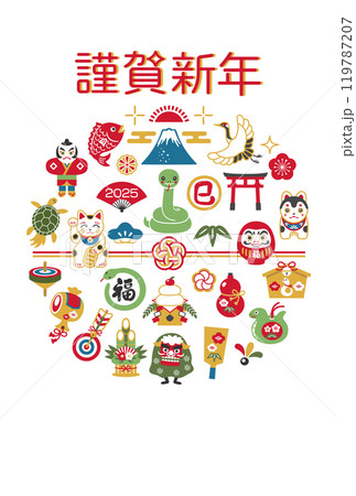 2025年巳年年賀状テンプレート縦_ベクターイラスト