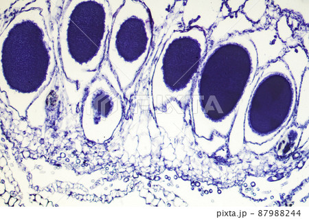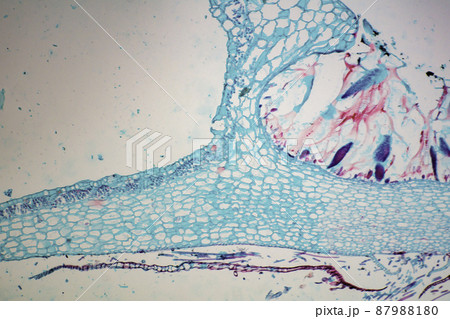 ゼニゴケの雄器床の縦断面 顕微鏡画像
