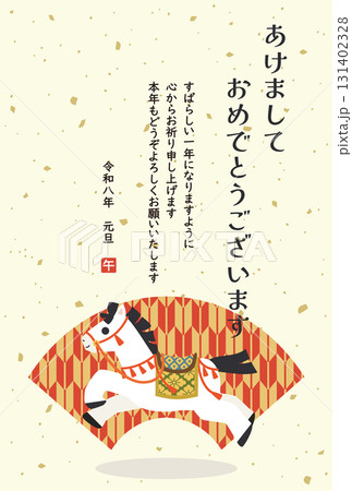 2026年 日本の年賀素材 市松模様に馬