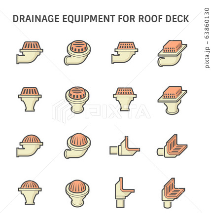 Roof deck and drainage equipment vector icon set