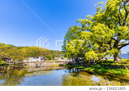初夏の縫ノ池と川津厳島神社 佐賀県白石町