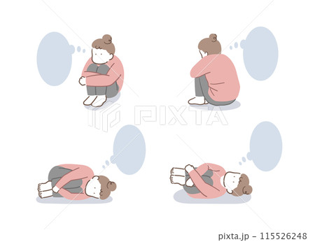 落ち込んだ女性のイラストセット