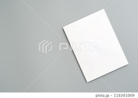 Empty White Sheet of Paper Positioned at an Angle on Light Gray Surface