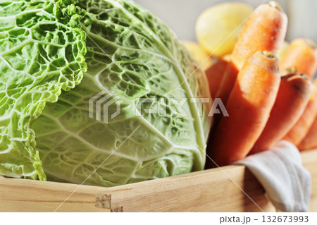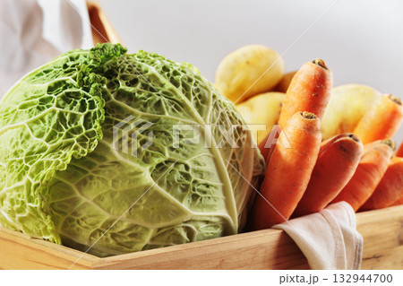 Savoy cabbage , carrots and potatoes