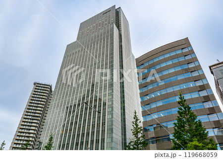 日本の横浜都市景観 桜木町駅前のビルなどを望む