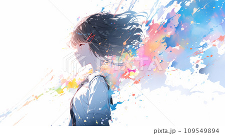 横顔の女性イラスト カラフル AI画像