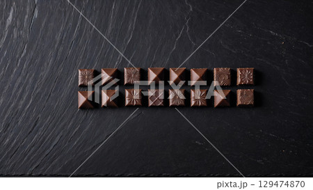 様々な模様と形の美しいチョコレートを並べたシックな背景