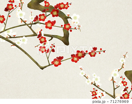 紅白の梅と和紙のシンプルな背景 - 複数のバリエーションがあります