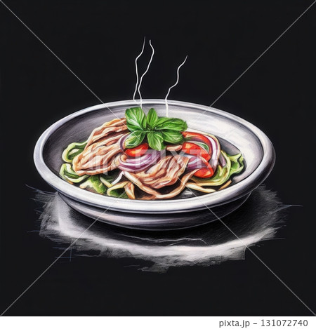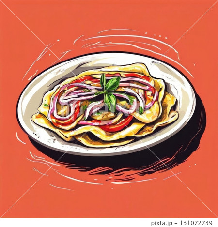 an AI Image Generator, Colorful Illustration of Italian Cuisine with Fresh Ingredients on a Plate