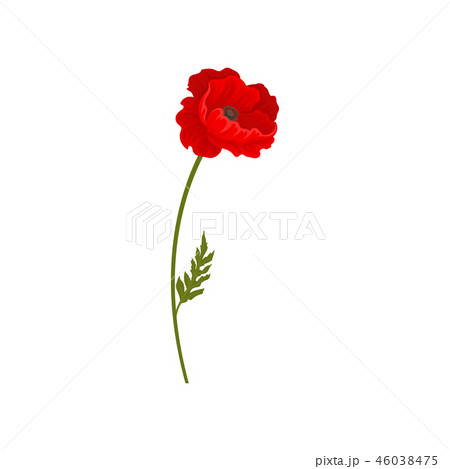 Red blooming poppy flower, botanical symbol vector Illustration on a white background