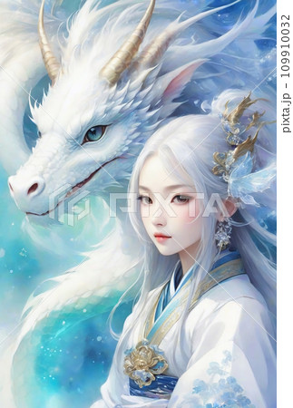 罔象女神, 瀬織津姫, 白龍の開運 イラスト アート(AI生成画像)
