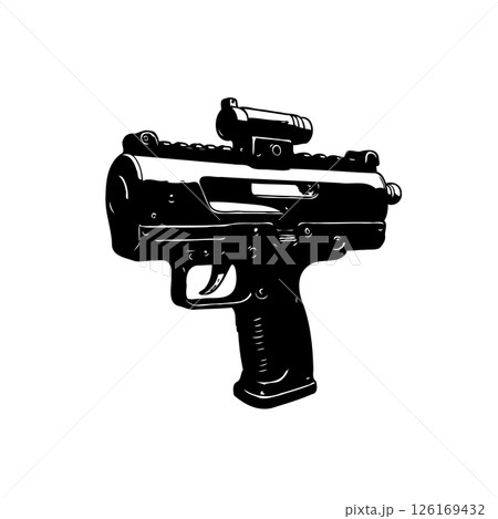Stylized depiction of a modern firearm against a clean white backdrop