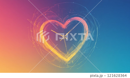 Clock hands showing time inside glowing heart shape on gradient background