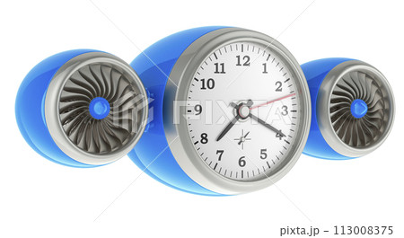Clock with two jet engines. 3D rendering