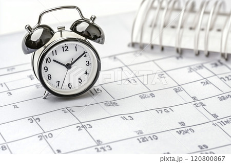 Vintage Alarm Clock on a Planner Calendar Sheet, Concept of Time Management, Scheduling, and Daily Planning for Productive Lifestyle and Effective Time Usage