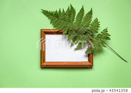 Framework and plant on green paper, top view.