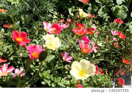夏の花壇の花:ポーチュラカ(スベリヒユ科)カラフルな花