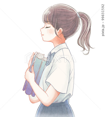 爽やか水彩風イラスト・本を持った図書委員の女子高生