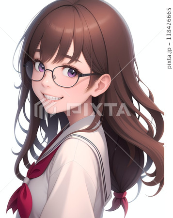 白い背景の前でポーズをとる若い女性のアニメイラスト