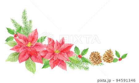 クリスマスイメージの装飾 ポインセチアの水彩イラスト アナログ手描き 背景透過