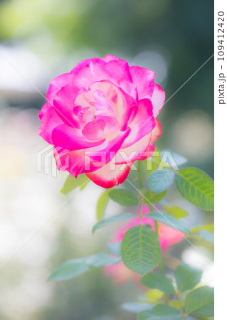 家の周りの草花 四季の色々 バラ園 美しい可憐な花びら 初秋のかぜに揺れるピンクのバラ