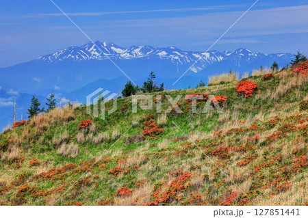 美ヶ原高原焼山のレンゲツツジと北アルプス