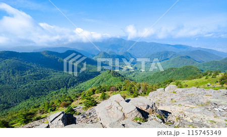美ヶ原の風景:登山道から王ケ頭・北アルプス方面の眺め