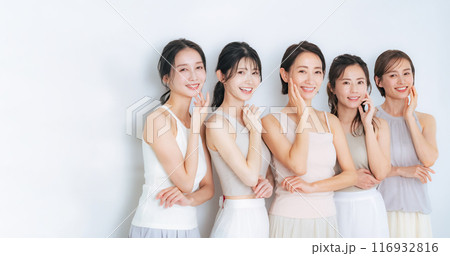 ナチュラルカラーの衣装を着たミドル女性グループの美容イメージ スキンケア コスメ