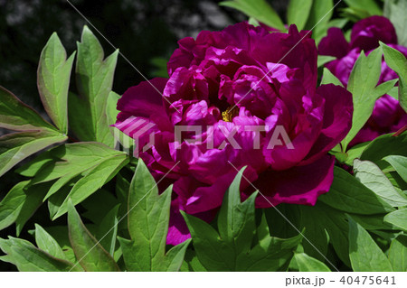 花、牡丹、赤紫色@自宅の庭、堺市、大阪府