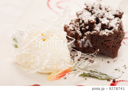 chocolate cake with ice cream
