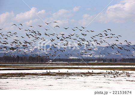 北海道 残雪のピンネシリとマガン