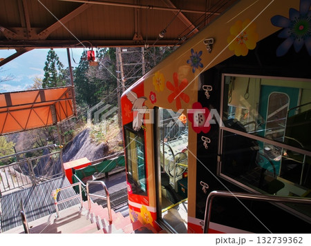 春の立山黒部アルペンルート 深緑に囲まれ立山ケーブルを美女平駅の展望テラスより臨む