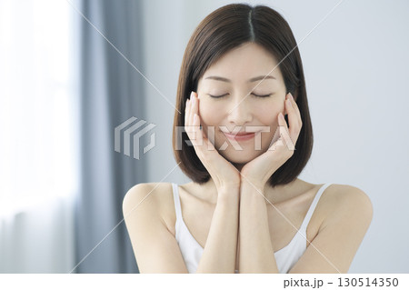 自宅でフェイスケアをする日本人女性のビューティーイメージ