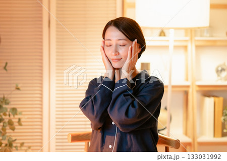 夜のリビング 女性 ビューティ