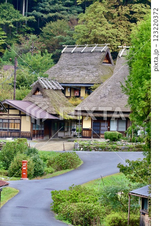 鯖街道、美山かやぶきの里の春景色「国指定重要伝統的建造物群保存地区」/レトロな赤い丸ポスト