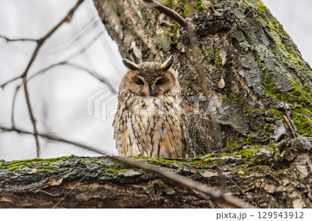 Long-eared owl (Asio otus), looking forward with wide opened eyes