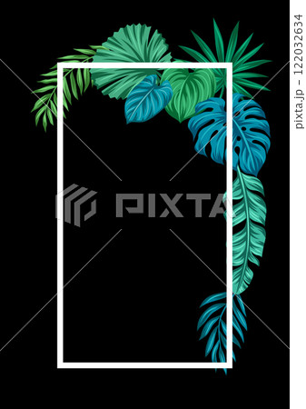 Frame with stylized palm leaves. Decorative image of tropical foliage and plants.