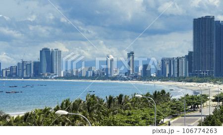 ベトナム・ダナン 青い海の広がるミーケービーチと高層ビル群 / Da Nang, Vietnam