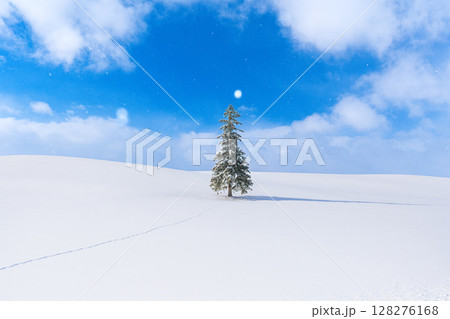《北海道》星空とクリスマスツリーの木・冬の美瑛