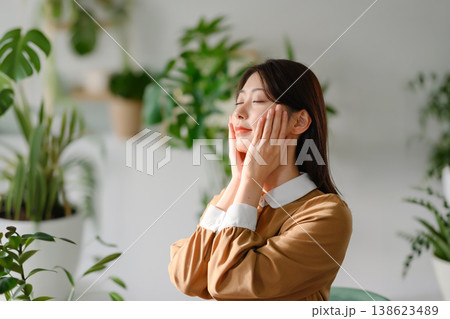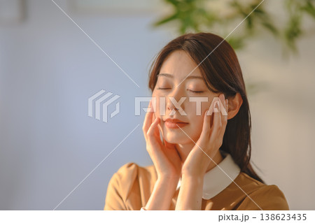 女性が顔に手を当ててリラックス