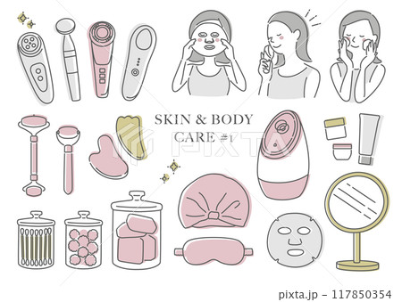 ビューティー バスルームグッズのイラストレーションセット
