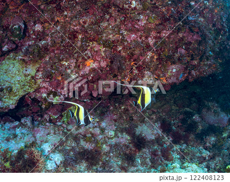 ペアの 大きく美しいツバメウオ(ツバメウオ属)他。 静岡県伊豆半島賀茂郡南伊豆町中木ヒリゾ浜2024