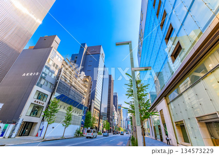 東京 中央区 銀座の都市風景 銀座八丁目交差点付近