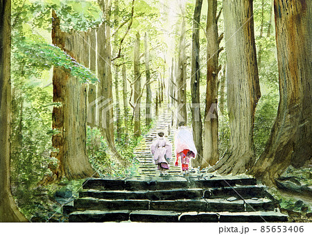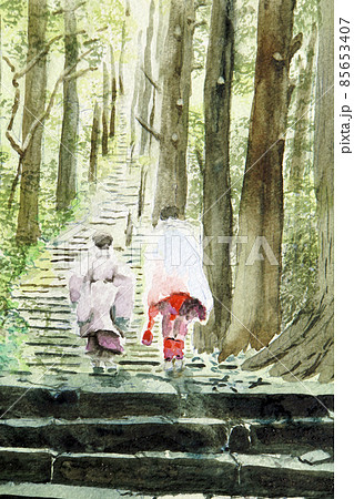 杉の古道を旅する旅人、外国人観光客