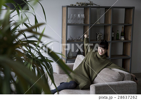 部屋でくつろぐ女性