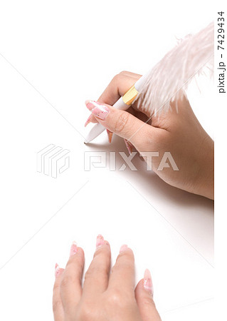 羽ペンを持つ女性の手