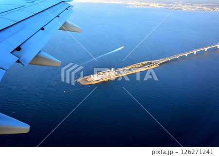 羽田空港に向けて飛行する機内より見る関西空港