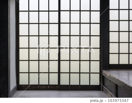 日本の古民家の障子と土間