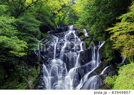 糸島の人気スポット 少しずつ秋の色に染まり始める白糸の滝 (福岡県糸島市)