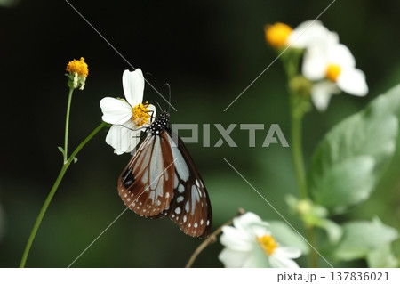 生き物 昆虫 アサギマダラ、三月の石垣島で。傷みのない綺麗な翅を持っているので島育ちでしょうか?